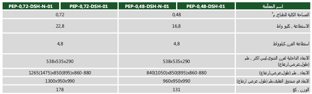 470 ملم . و مع منظم للحرارة لسقف و أرضیة الفرن . درجة الحرارة من 50 إلى 300 درجة . و حمایة x صواني 530